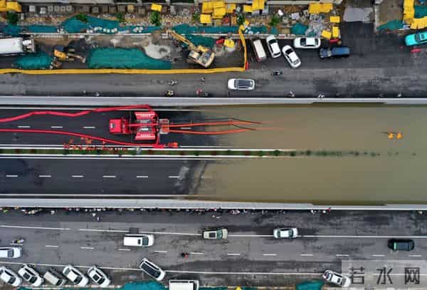 7月21日在郑州市桐柏路附近拍摄的排涝现场(无人机照片)。新华社发(麻翛然摄)