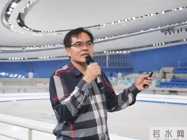 第二场培训的主题是场馆工程,由国家速滑馆经营有限责任公司工程管理部经理王建林老师介绍。王老师讲述了场馆建设过程中设计和施工团队遇到的技术困难点与所研发的创新技术,如大幅度节约屋面结构用钢量的国产高钒封闭索,以及数字孪生系统、智能服务app等智慧场馆运行服务关键技术,让置身于赛道旁的同学们切实体会到了科技创新助推智慧冬奥,感受到了中国智慧与中国力量。