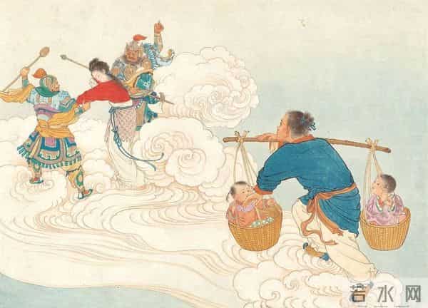 织女在人间遇上了牛郎。为了牛郎,织女选择留在了人间,织女和牛郎生下一对儿女。但织女是玉帝的女儿,最后织女不得不告别牛郎回到天庭。