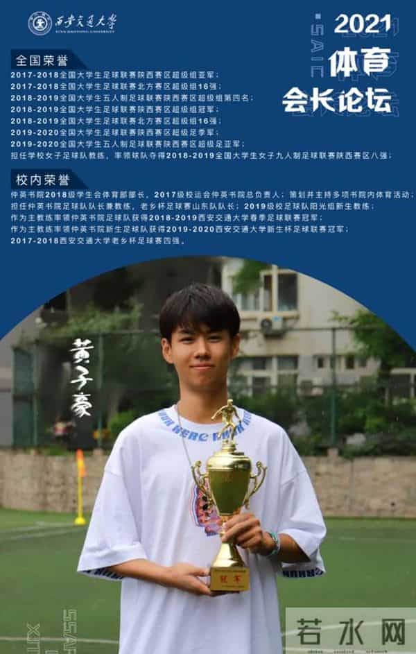 黄子豪认为足球道路上他永远不会独行,每一个热爱足球的人都是他的伙伴。2018年9月1日他选择担任校女子足球队教练,及仲英书院足球队队长兼教练,从队员到教练,身份的转换压力接踵而来。但黄子豪顶住压力,迎难而上,积极履行起教练的职责,带领队员们备战比赛,凝聚起整支队伍的力量。最终率领校女子足球取得2018-2019全国大学生女子九人制足球联赛陕西赛区八强,仲英书院足球队取得2018-2019西安交通大学春季足球联赛冠军等好成绩。