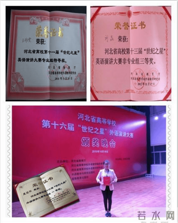 经过在学术型学生社团中的历练与提高,每位学术的专业基础能力切实得到了加强,在各级各类比赛中,屡有斩获。近两年,思辨演讲社社员共获得河北省世纪之星外语演讲大赛特等奖1个、一等奖1个、二等奖1个、三等奖6个;CCTV希望之星英语演讲大赛省一等奖14个。英华翻译社社员共获得全国大学生英语竞赛C类特等奖1个、一等奖2个,B类一等奖3个。英典读书会社员共获得河北省阅读大赛省级二等奖2个,河北省写作大赛省级二等奖2个。俄语瞳林社社员获得京津冀俄语大赛省级二等奖1个、三等奖5个。