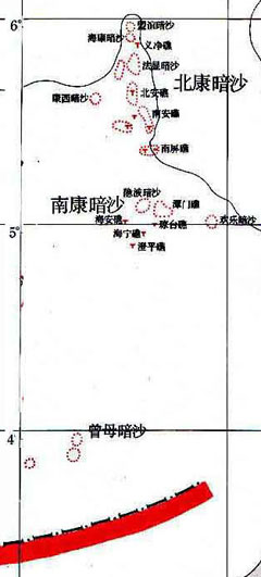 北康暗沙位于中国南沙群岛南部,马来西亚在此地建有海上油井。